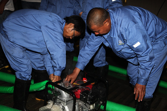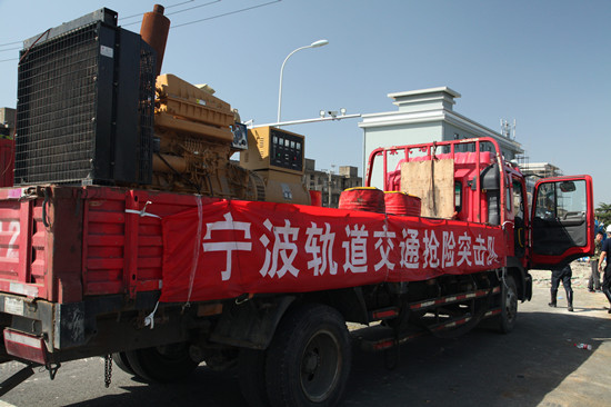 台风“菲特”侵袭过后,余姚城区水位虽逐渐减退,但部分社区和低洼地段积水仍十分严重,排水成了抗洪救灾的关键环节,排水设施捉襟见肘。10月11日,在轨道交通工地积水基本排尽之后,轨道交通工程建设指挥部立即调拨大功率发电机、水泵等排水设施,赶赴灾区支援抢险。