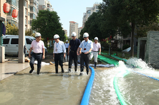 尹文德一行首先来到梨洲街道最良新村,在该小区地下车库排涝现场,认真查看积水状况,了解抢险排涝安排与进展。尹文德叮嘱抢险人员,要根据上级要求与现场实际情况,紧紧依靠当地政府和群众,科学制定排涝方案,发扬吃苦耐劳精神,坚决完成排涝抢险任务。随后,尹文德一行又赶赴三江口小区,查看排涝现场,与抢险人员及社区居民交谈,详细询问受灾、抗灾及排水情况。