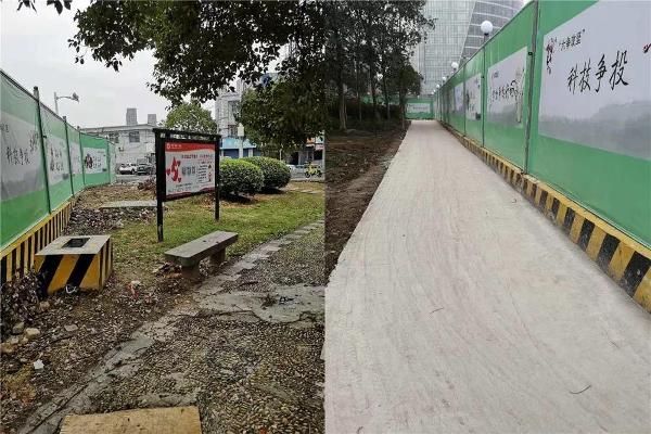 2018年11月30日,轨道交通5号线一期TJ5104钟公庙站中铁十局项目部为社区居民修路。