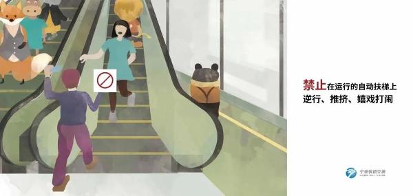 ●在运行的自动扶梯上逆行、推挤、嬉戏打闹;
