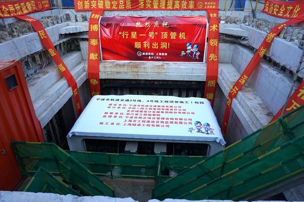 2018年7月20日,3号线一期鄞州区政府站D号出入口“行星一号”顶管机顺利始发。