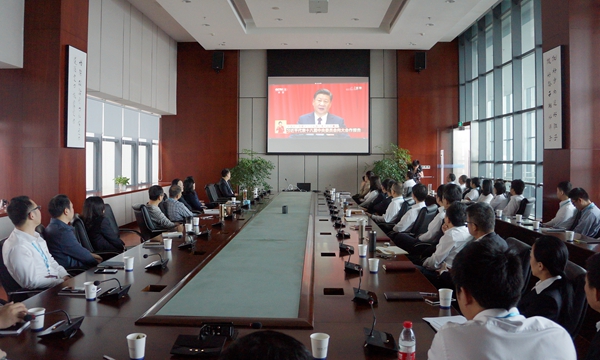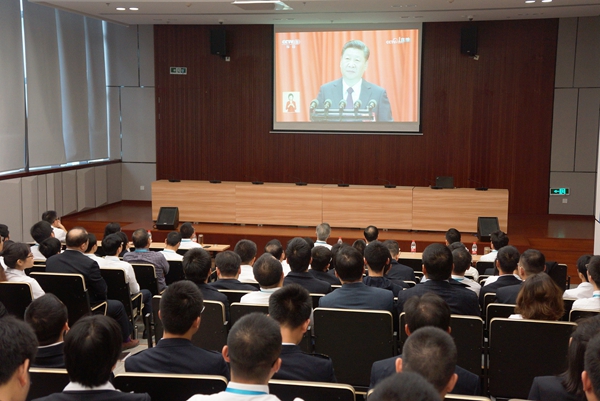 使命呼唤担当,使命引领未来。报告过程中,全场一次次响起热烈的掌声。在运营分公司、地产开发分公司、智慧地铁、综合物业服务分公司等分会场,干部员工身着统一工作服以崇敬庄严的心情听取习近平总书记在开幕会上的报告。从会议室到办公室,从运营车站到一线项目部,大家通过电视、网络等媒体,共同关注这一历史性的盛会。